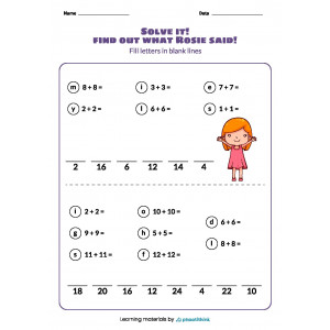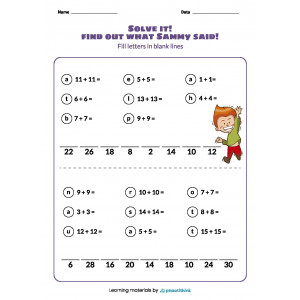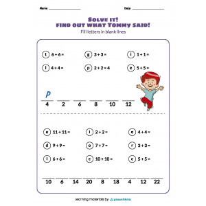 There are several puzzles on each learning page. To solve them, children need to add up numbers and fill letters in blank lines. This activity will inspire students to learn with fun. To help kids be more engaged, let them color the illustrations and use hourglasses to set a time limit.