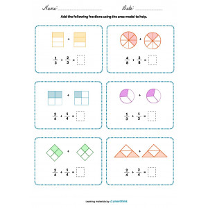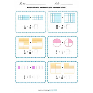 These printable worksheets are the perfect learning activity that helps a child gets comfortable with fractions. Practicing with these resources, children need to add fractions and write numbers in boxes.