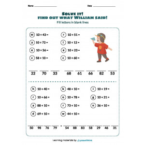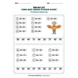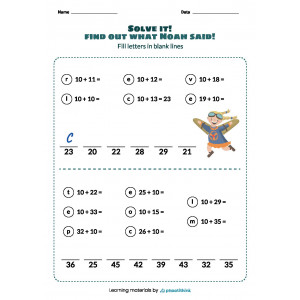 Our worksheets provide several tasks on each page. Children need to add up the numbers, fill letters in blank lines and solve the puzzle. Children will love learning while having fun!