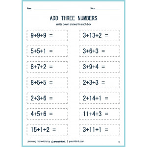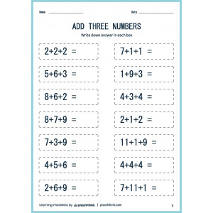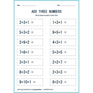 This task is one of the simplest. It will help to bring basic math skills to automatism. Our printable worksheets for practicing adding three numbers will help students lay a solid foundation in this basic math skill. Just ask children to add numbers one by one.