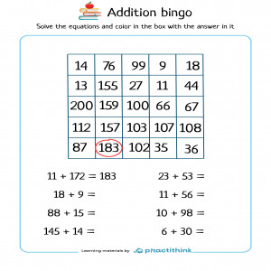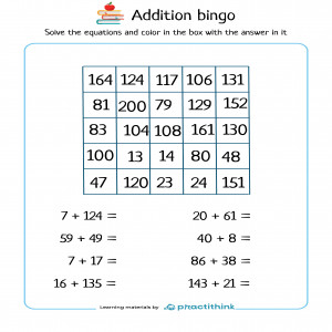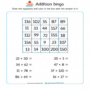 Addition Bingo worksheets up to 200