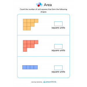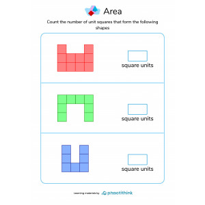 These printable worksheets are the perfect learning activity to introduce your students to the concept and principle of calculating area. Practicing with these resources, students need to count the squares the sgapeas are broken into and write the number of square units into the space provided.