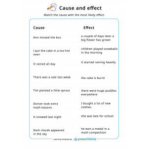 The worksheets provide tasks in finding the second part of the sentence. Students need to match the causes with the most likely effects.