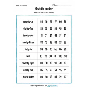 Ask the children to identify a number, associate it with a word denoting this number and circle the correct answer.