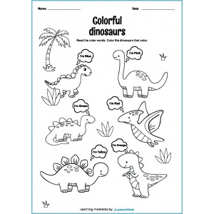 Use the following ideas to make your class even more captivating. Color the rainbow with crayons or watercolors, color the sun and the cloud. Talk about the weather today and when you can see the rainbow. After coloring the dinosaurs, ask children to discuss the dinosaurs comparing them based on their looks and their abilities. Ask children to draw their favorite dinosaur themselves.