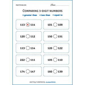 Let's start with hundreds. Both there and there is “1”, so the numbers are the same for this parameter. Let's move on. Tens. Again “1” and “1”, which means that the numbers are equal here too. Moving on to ones. “3” and “4”. What's more? Of course, every third-grader knows that “4” is bigger than “3”, which means that according to this parameter, the number 114 "wins". We put in the circle the sign: "<", and move on to the next comparison.