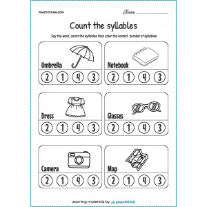 Ask the child to count the number of syllables when pronouncing a word and paint over the desired number.