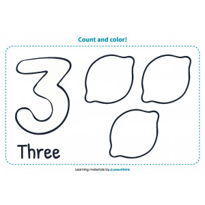 Encourage your child to name and color the fruit and vegetables, then count them together. Color up the digit too and ask kids to name it.