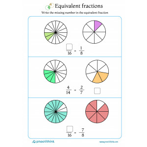 These printable worksheets are the perfect learning activity that helps a child visualize fractions and find those of the same value. Practicing with these resources, children find out that the very same amount or a number can be visualized and recorded in different ways.