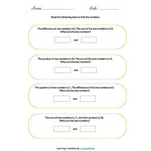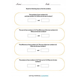 We may add or subtract giving digits to identify the answer. For example, it is possible to find numbers with the sum and difference provided or use the product and the quotient of numbers. Solving such problems, children learn to think logically.