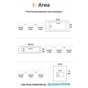 Our worksheets provide several tasks on each page. Students need to find the area between two rectangles and write down the answers in the space provided.