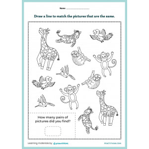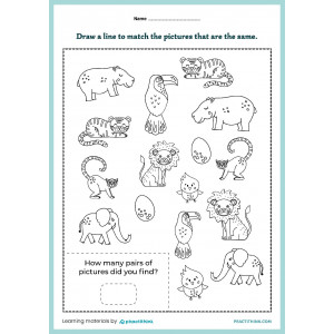 This material is aimed at teaching the identification of objects. While working on the task, children should connect identical pictures by a line.