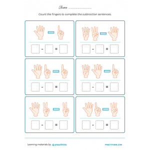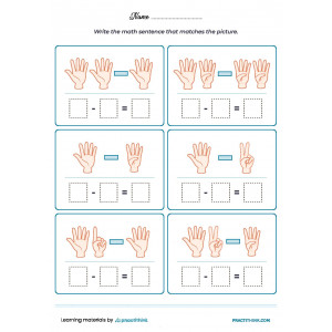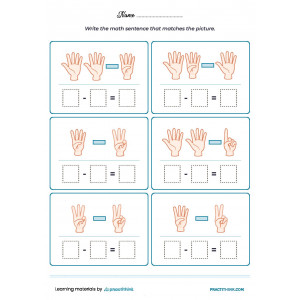 Each worksheet contains the task with illustrations. Students need to add or subtract fingers and write down the math sentence. Kids will love practicing with fun and will master their early math skills in no time.