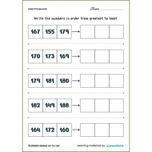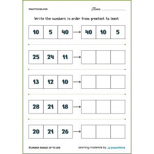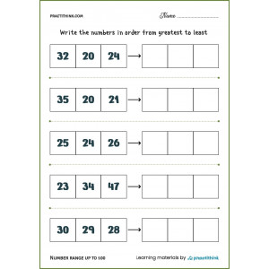 These tasks are ideal for performing in the classroom and at home, ask children to first pronounce all the numbers, and then write them in descending order in the corresponding window.