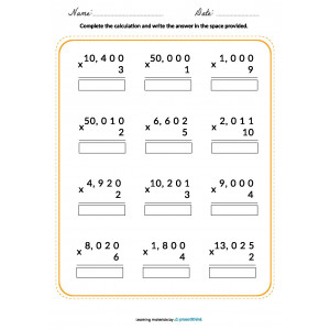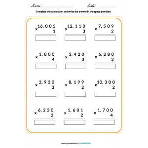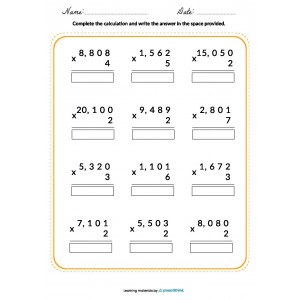 This set of math worksheets is for 9-10 years old children to practice multiplication. This activity is a perfect way for kids to deepen their math knowledge in doing long multiplication.