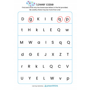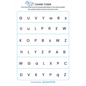 These learning pages will help children to practice finding lowercase letters.