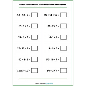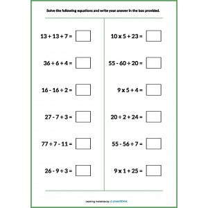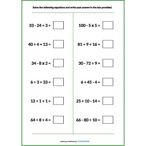 We offer you a set of fun worksheets for 9-10 years old children. These learning pages will help young students practice solving equations and master their early math skills. Using these pages, kids will memorize the order of math operations. This topic is very significant for children`s education. By performing these tasks, young learners will go ahead in exploring the world of math.