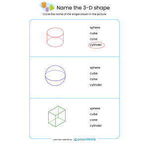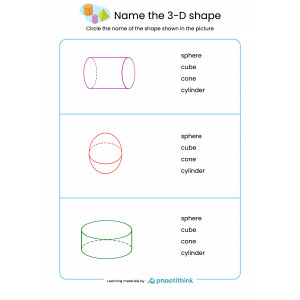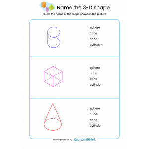These printable worksheets will help your kids to recognize three-dimensional shapes easier. By learning how to identify 3-D shapes, students will be ready to reach new heights in learning math. It will deepen their knowledge and challenge them to solve more advanced tasks.