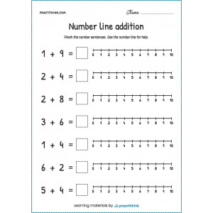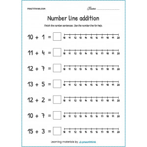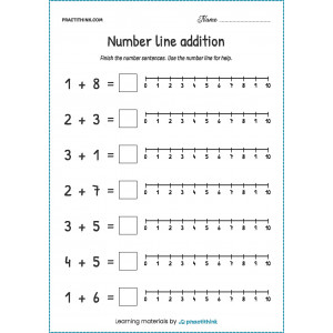 This task will help children practice addition. It will help them learn how to solve equations without the help of visual images. The task consists in solving examples with addition and writing the answer to each task using a numerical ruler. In the process of working on this exercise, children will learn how to write numbers correctly and work out the acquired mathematical skills.