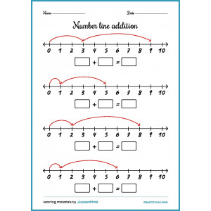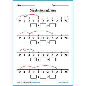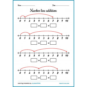 In this printout you can see the numerical rulers. The child needs to make an example based on the arrows marking the segments on the ruler, right it down in the boxes and find the answer like shown in the example.