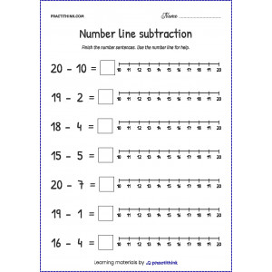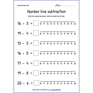 This task will help children practice subtraction. It will help them learn how to solve equations without the help of visual images. The task consists in solving examples with subtraction and writing the answer to each task using a numerical ruler. In the process of working on this exercise, children will learn how to write numbers correctly and work out the acquired mathematical skills.