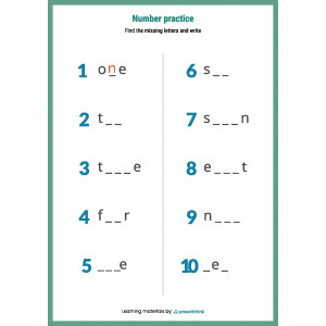 These printable worksheets are the perfect learning activity that helps a child get comfortable with writing and spelling out numbers from 1 to 10. Practicing with these resources, young learners need to trace, match, write, fill in the pattern, color the numbers, and their names.