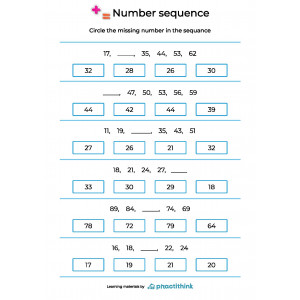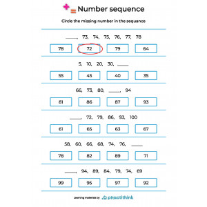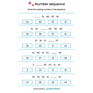 Our worksheets provide sets of tasks on each page. Children need to complete the sequence and circle the missing digit. You can set a time limit for each page to help kids be more involved.