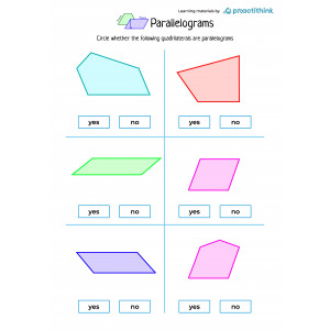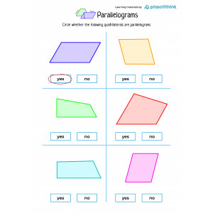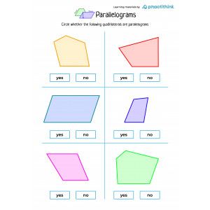 You can find several figures on each learning page. Children need to decide whether the given shape is a parallelogram or not and circle the correct answer. Before