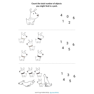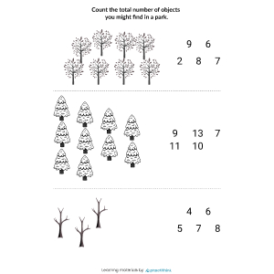 This worksheet will help kids learn about number sense, and improve their ability to count a number of objects and associate that number with a written numeral from 1 to 10.