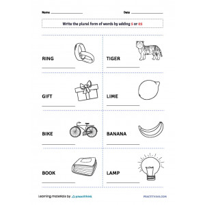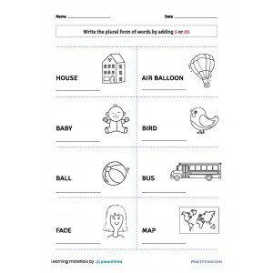 Each worksheet contains various words. Children need to make the singular form plural and write down the answer in the space provided. When finished with the task, let kids color up the illustrations. They will love practicing with fun!