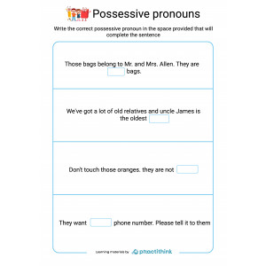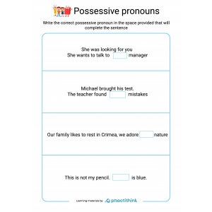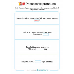 These printable worksheets are the perfect learning activity that helps a child get comfortable with differentiating between possessive pronouns and possessive adjectives and choosing the correct version. Practicing with these resources, students need to fill in the gap with the correct possessive pronoun or adjective.