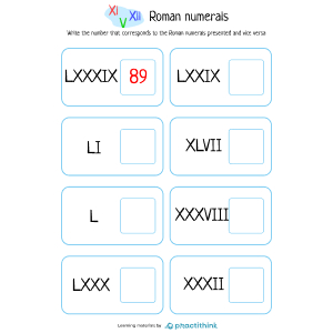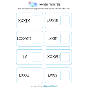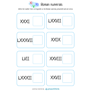 Learning how to read and translate Roman numerals is a skill still relevant even a millenium after the fall of the Roman Empire. These Roman Numeral Worksheets require students to translate between Roman and Arabic numerals. Children familiarize themselves with the Roman numerals and how to use them correctly. This worksheet will help kids with associating numbers to symbols and vice versa.