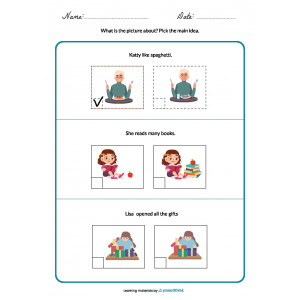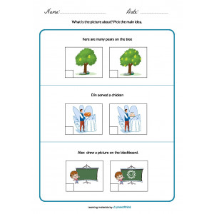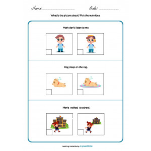 These printable worksheets will help your kids practice determining the main idea. Each page offers a set of pictures. Children need to read the sentence, identify the main idea, and choose the correct picture.