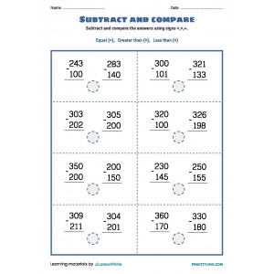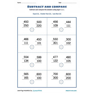 These printed materials are intended for third-graders. Use this set to practice subtraction and comparing numbers up to 999.