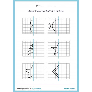 Use this set of worksheets to teach kids the principles of symmetry. Students need to fill in the other half of a picture to complete it. The key principle is that each side should be the same as the other.