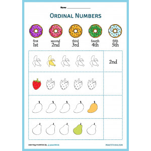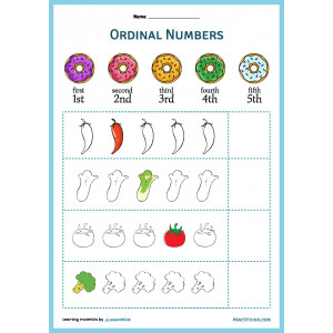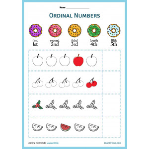 These printable worksheets are the perfect learning activity that helps a child gets comfortable with identifying, naming and writing ordinal numbers. Practicing with these resources, students need to notice the colored object and write the ordinal number in the box provided.