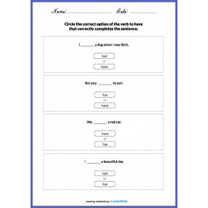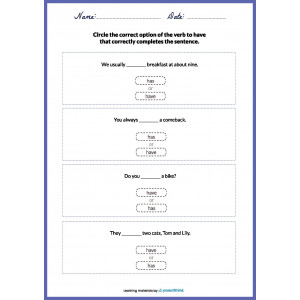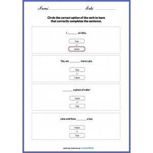 These printable worksheets are a great learning activity that helps a child learn to conjugate the verb “to have” confidently. This verb is irregular and has a long history. Practicing with these resources, students need to choose one correct option from the two given. Children should circle, shade, or color the correct verb form.