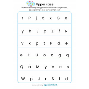 These printable worksheets are a wonderful learning activity that helps a child to get comfortable with noticing uppercase letters of the alphabet. Practicing with these resources children will learn to distinguish between the lowercase and uppercase letters.