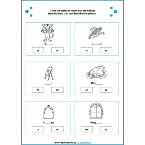 Each worksheet provides several tasks to practice finding missing letters. Children need to look at the given options and choose the one that will complete the word and describe the picture.