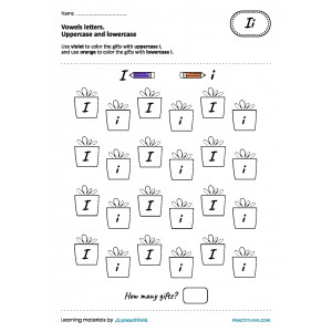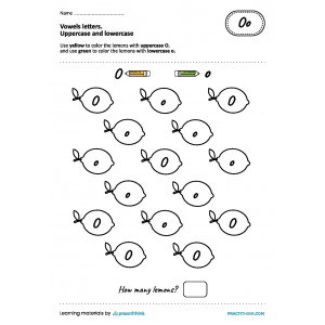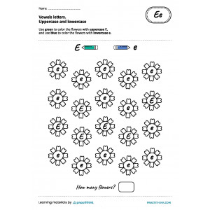 This worksheet will help children differentiate between uppercase and lowercase with vowels letters. Children need to find uppercase and lowercase letters and circle or paint them in different colors. Using colored pencils will make the task more interesting for kids.