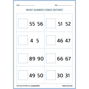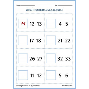 This task is perfect for repeating the material. Just ask children to write down the number that comes before the ones already written in the box. Ask children to name all the numbers and enter the necessary ones. You can use the sand clock to turn the lesson into an exciting competition.
