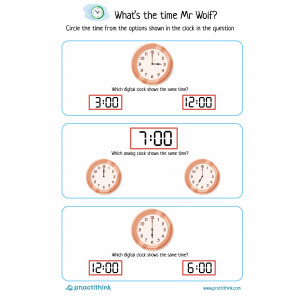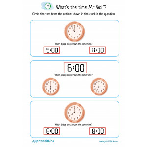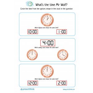 Our worksheets provide several tasks on each page. Children need to circle the time from the options shown in the clock in the question.