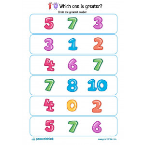 Our worksheets provide several tasks on each page. Children need to determine and circle the greatest number in the line. You may download and print these pages to help students practice every day. Use our materials when learning to compare numbers in classes or when self-studying at home.