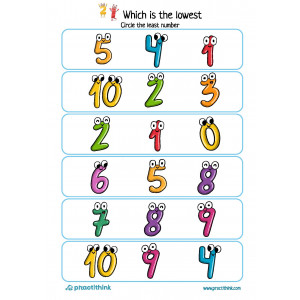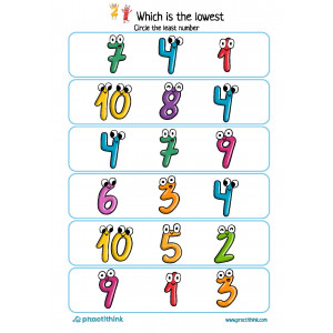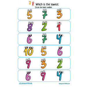 These worksheets will help young learners overcome difficulties in comparing numbers. There are several tasks on each page. Students need to find and circle the least number among the numbers provided.