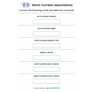 Welcome to our engaging Numbers Worksheets for 9-10 years-olds. We have created these printables for young learners to help them practice converting number words into numerals. This activity will benefit children to master their early skills and become more proficient in recognizing numbers in no time.